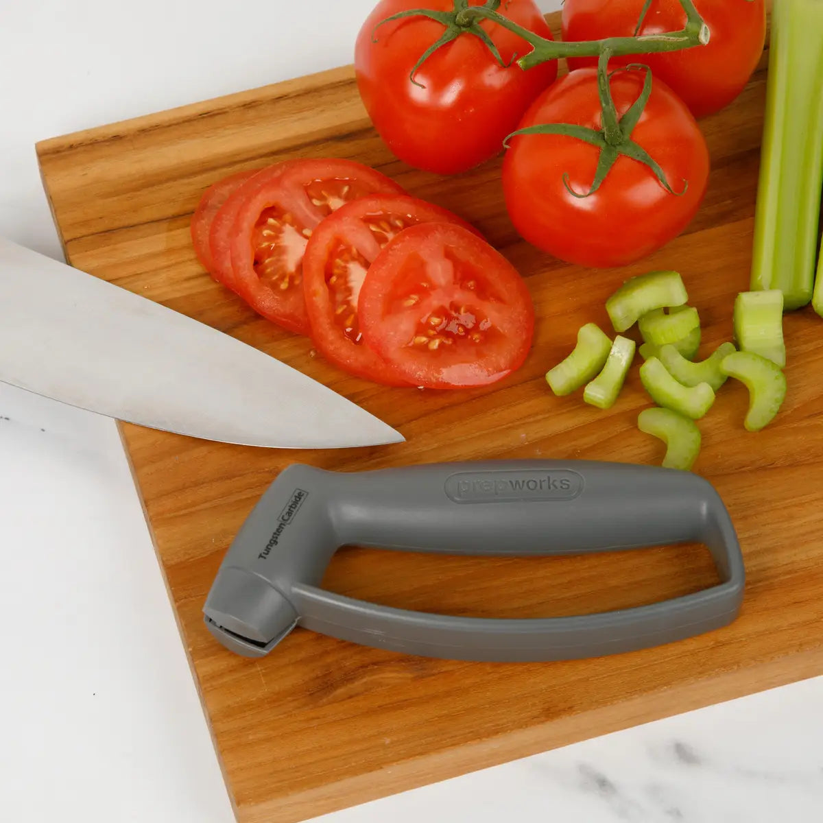 When it's time to sharpen a non-serrated knife, simply pull its blade between the specially edged and hardened steel wheels of the sharpener a few times and carefully wipe off the blade to remove any metal shavings and you’re done! The knife will be as sharp as the day it left the factory.
