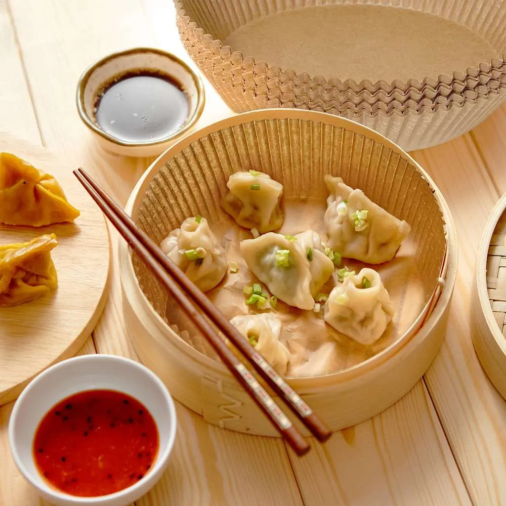 Parchment paper — it's unbleached and food-safe, ensuring that it does not alter the quality of your food. These liners are excellent for keeping your basket clean.